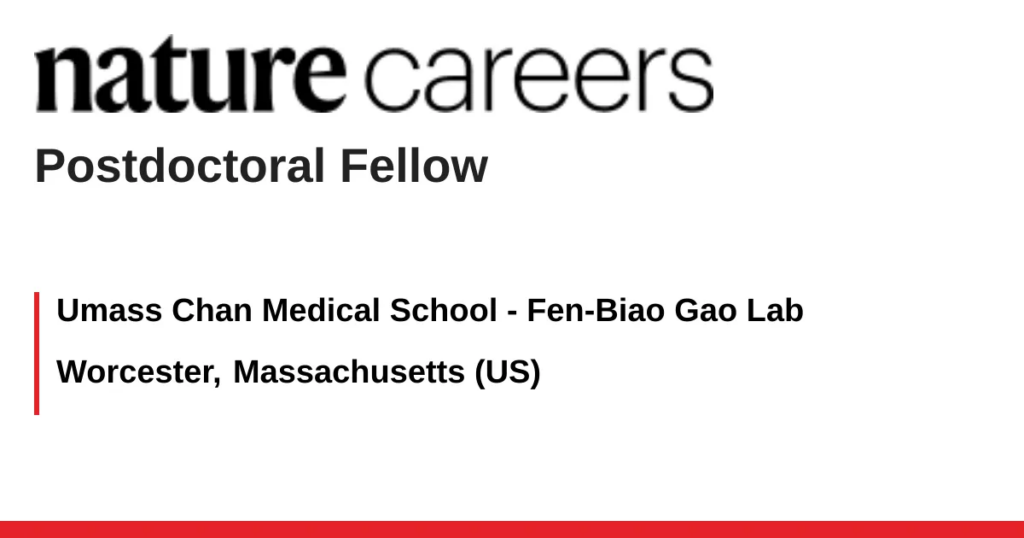 A Postdoctoral Fellow position is immediately available in the laboratory of Dr. Fen-Biao Gao at the University of Massachusetts Chan Medical School to study pathogenic mechanisms of fronototemporal dementia (FTD) using patient iPSC-derived neurons. Please also see our recent papers: https://www.umassmed.edu/fen-biaogaolab/Publications). Candidates with a strong research experience in molecular biology and neuroscience are encouraged to apply.